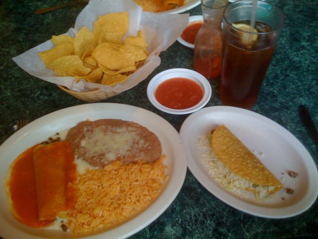 Los Bravos has changed their lunch combo menu and bumped up the prices a little. It’s still a great deal- I just had to “settle” for the #11 instead of the uber-valued #25. There are now different choices for each day. All you see here was a mere $8.21 (post tax, pre tip).