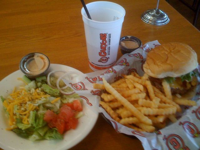 …well, mostly anyway. I cashed in my punch card and scored a $5.29 bacon cheeseburger for nada. But then I added fries, drink and salad to run the bill up to $5.71. As a bonus, the cute girl behind the counter hooked me up with three punches on a new card. Sweet!